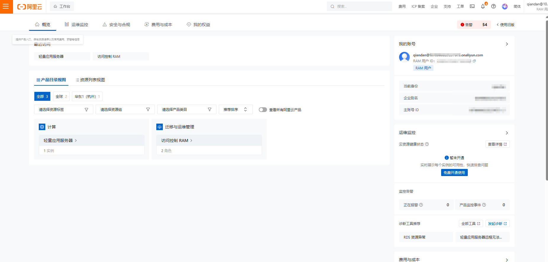 这次我们主要用到阿里云的RAM授权,实现不登原账号管理轻量服务器,那样原账号再风控我们也能管理,具体能不能突破风控,这个另说,目前我的没有风控